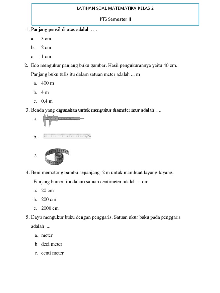 Soal Cm M Kelas 2! Soal ujian matematika kelas 2 sd tentang satuan panjang by kenny_rahayu_1.